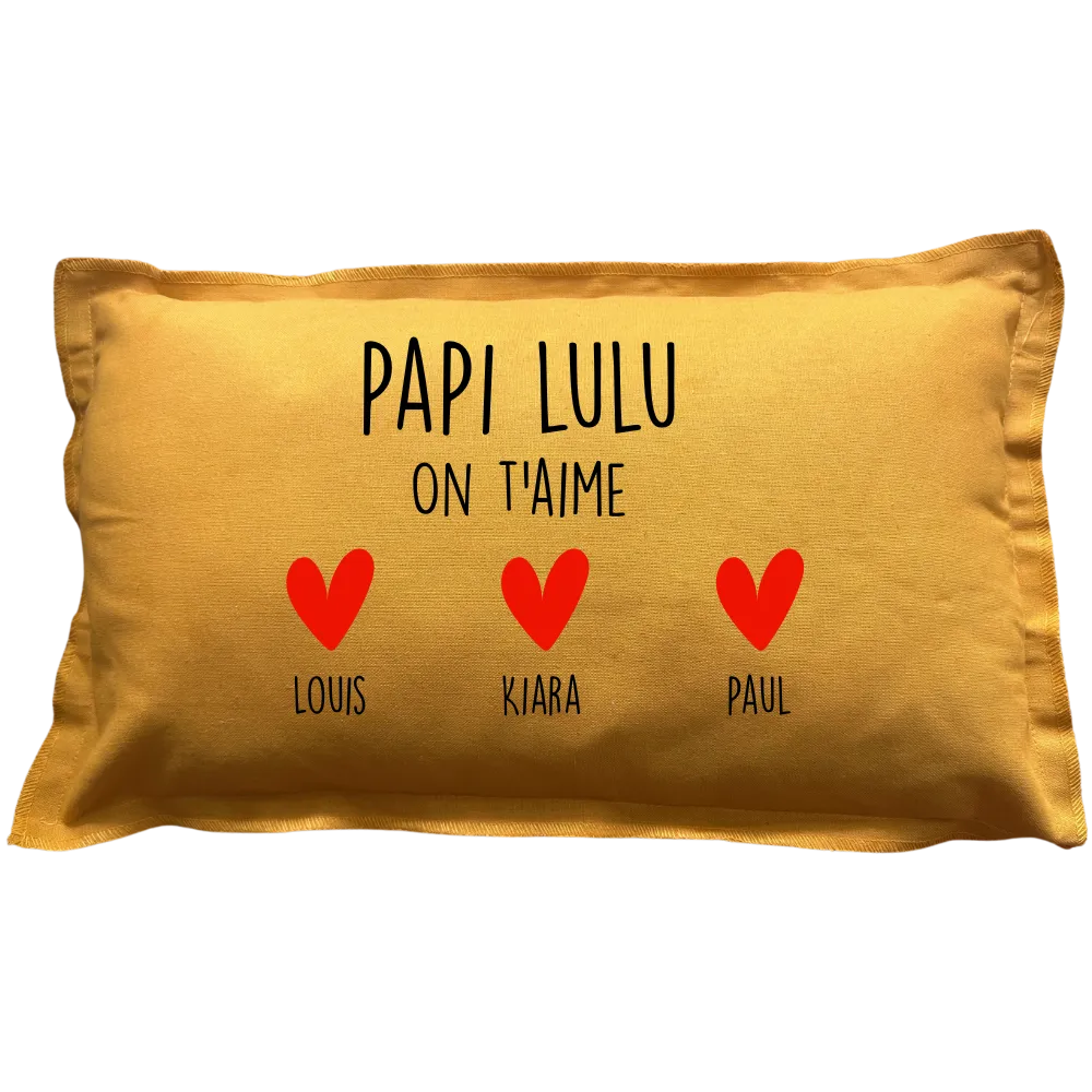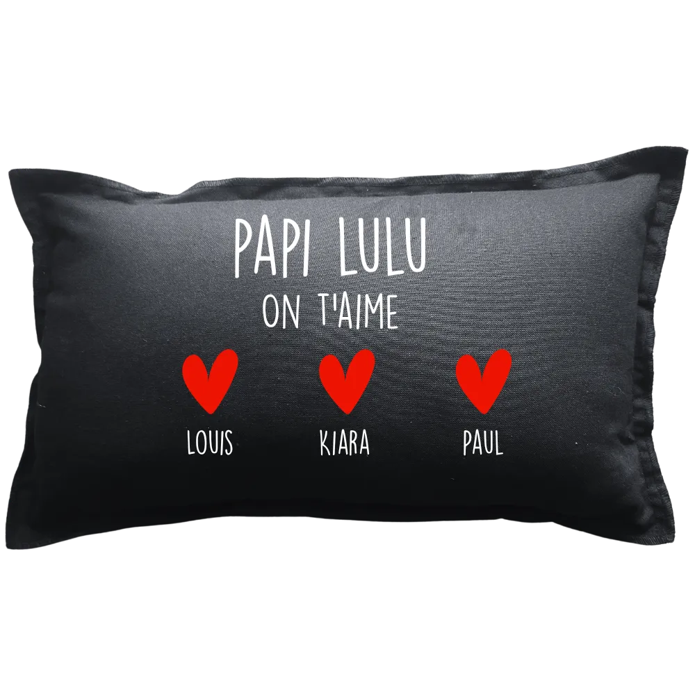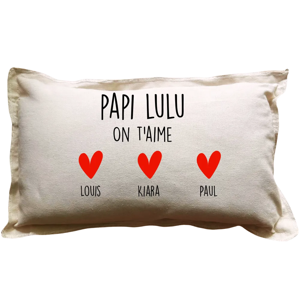 Coussin rectangulaire personnalisé famille : Papi on t'aime