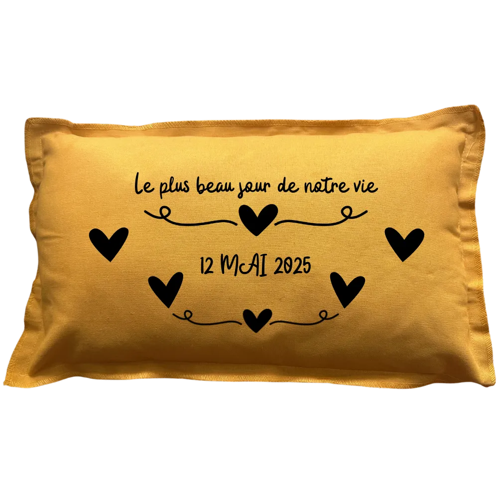 Coussin rectangulaire personnalisé mariage : Le plus beau jour