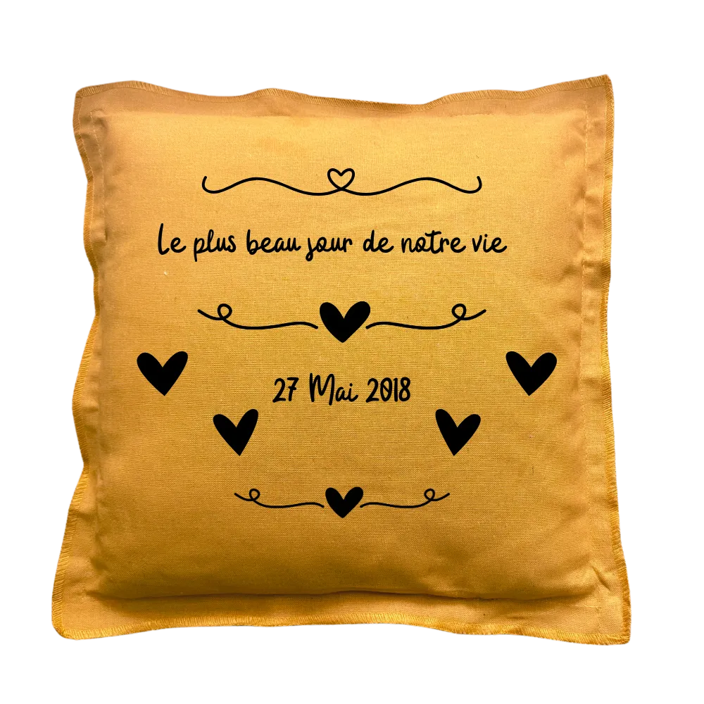 Un coussin personnalisé "Le plus beau jour" unique pour votre mariage